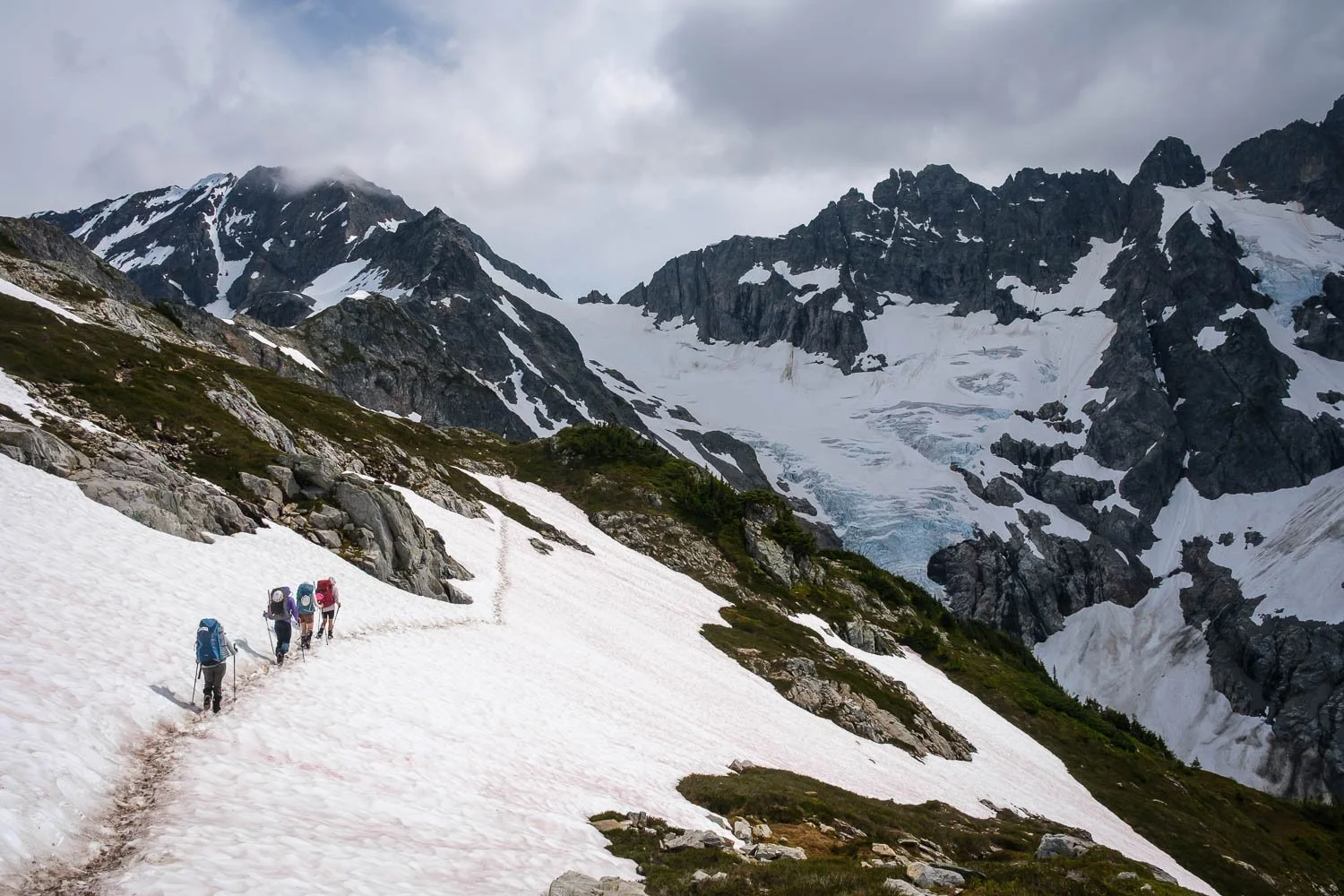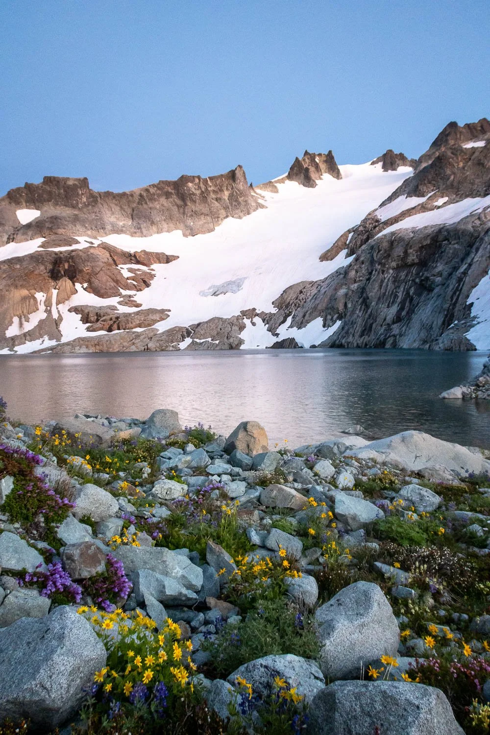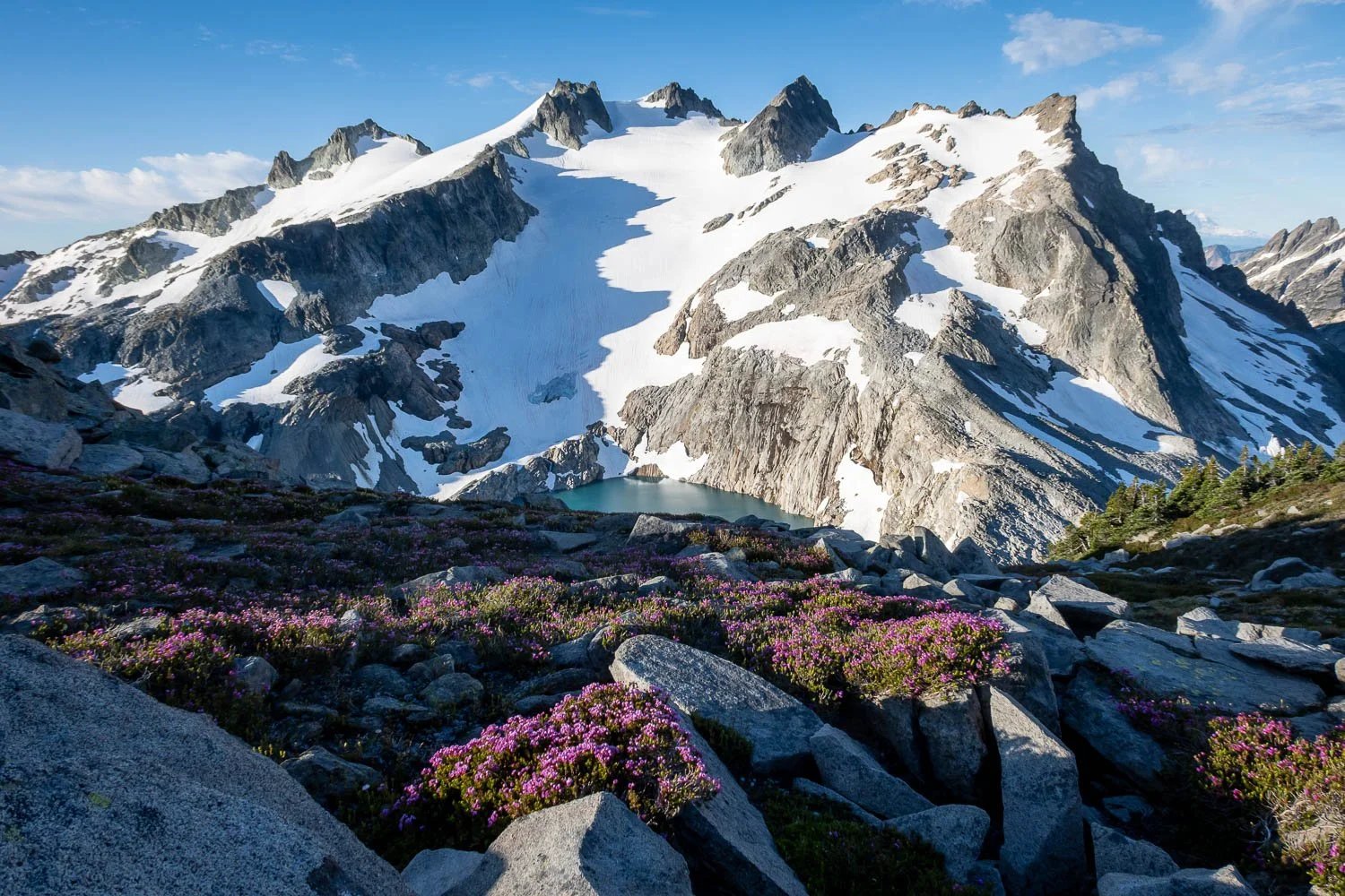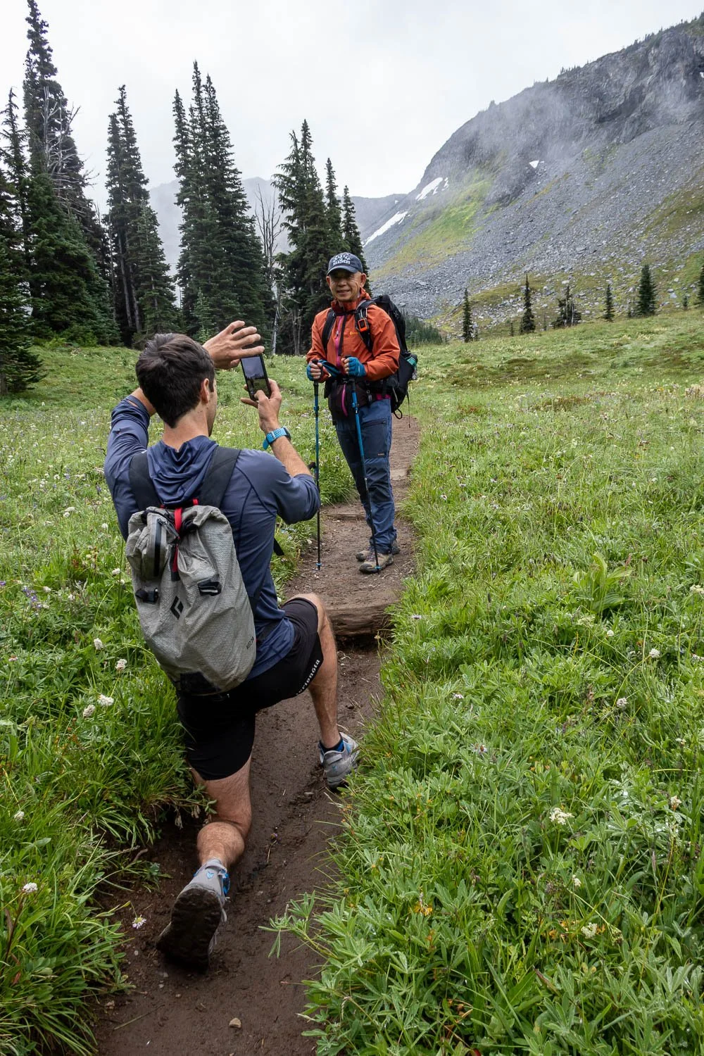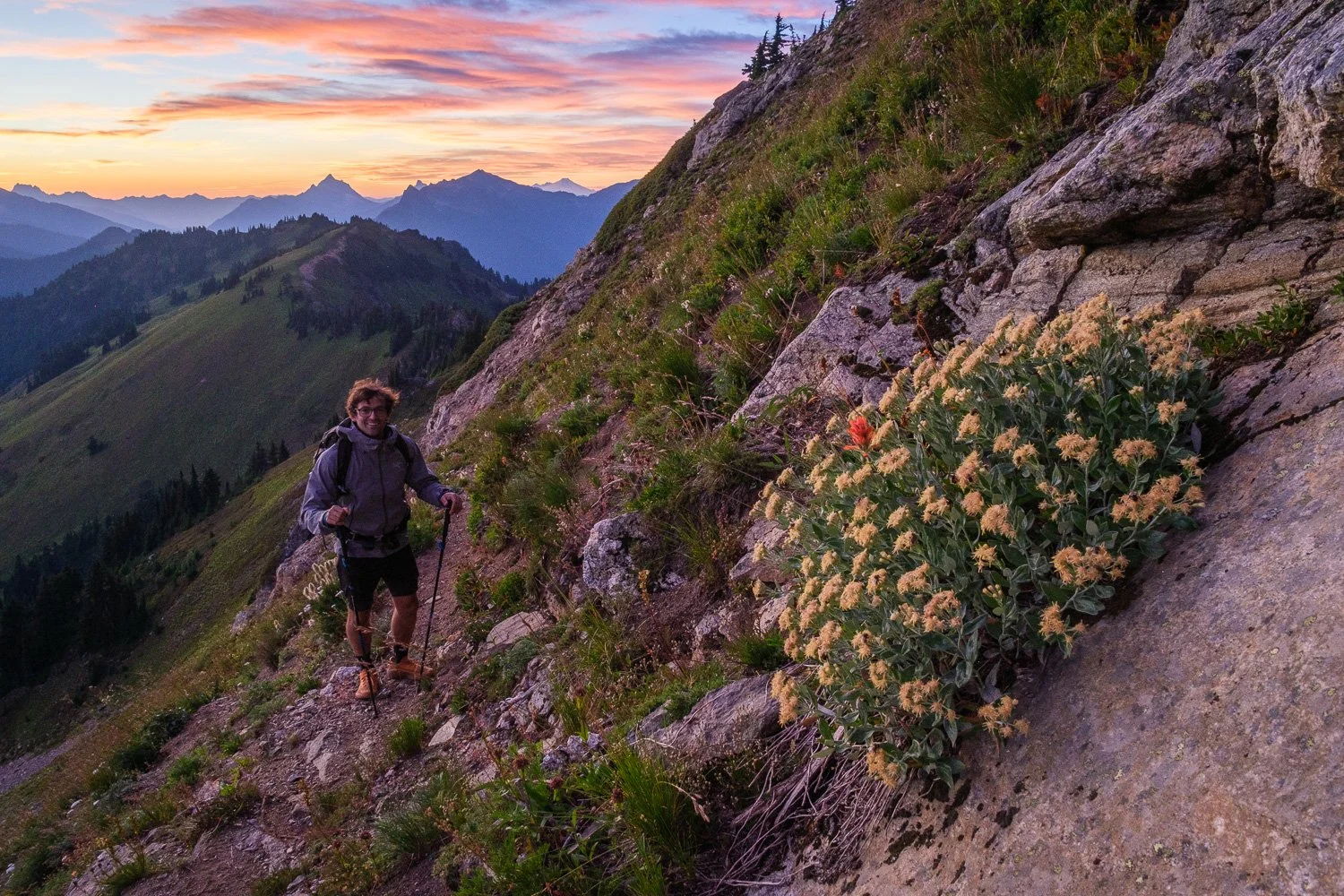 Not adequately tuckered by an ascent of The Three Dicks in the first half of the weekend, I called up my buddy Marco and asked him to help tire me out. We set our sights on a quick hike of the Pilot Ridge Loop, a classic backpacking lollipop in the Glacier Peak Wilderness. The hike stays up high along the ridgetops for most of its length, and I was excited to go light and get some miles under our feet, while strolling through meadows with flowers and great views.