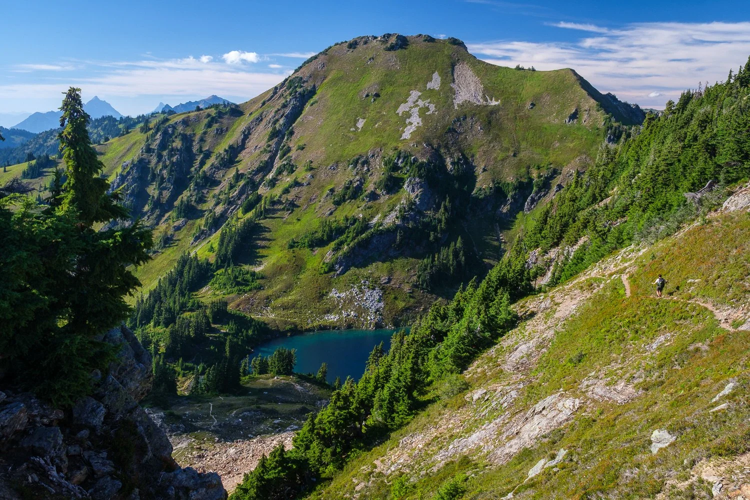 We left Seattle at a civilized hour on Sunday morning and rattled up the road to the North Fork Sauk Trailhead, then cruised through beautiful forest before powering up the switchbacks to the intersection with the PCT near White Pass. The meadows along the ridges are gorgeous, and as we worked our way south on the PCT, the views just kept getting better.