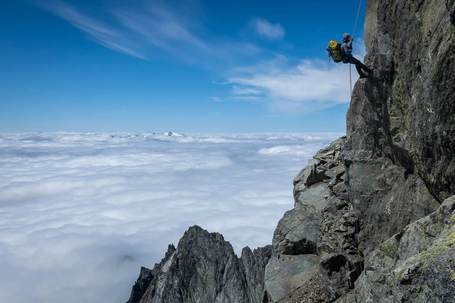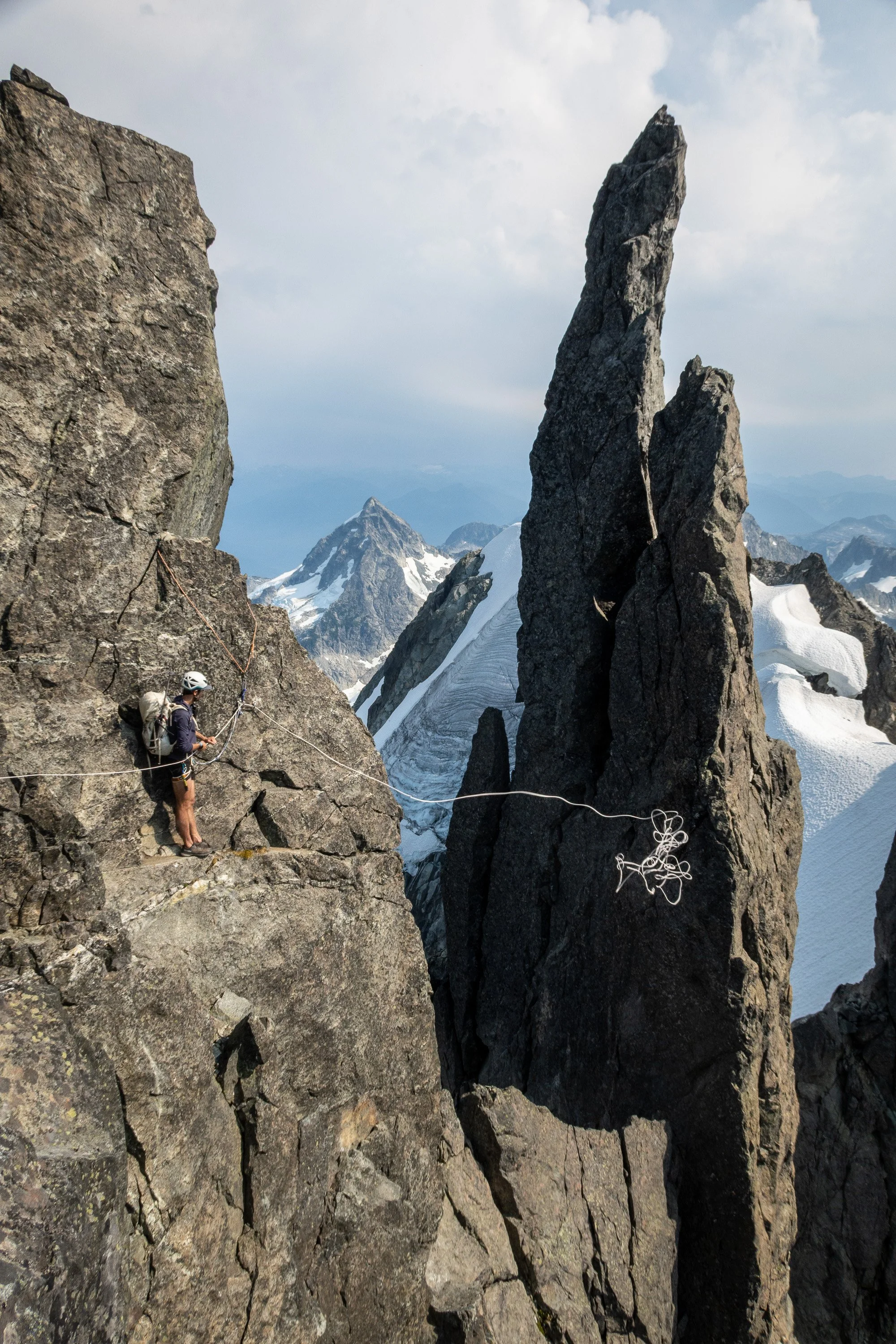 Matt setting up a rappel in front of the Witch’s Tooth.