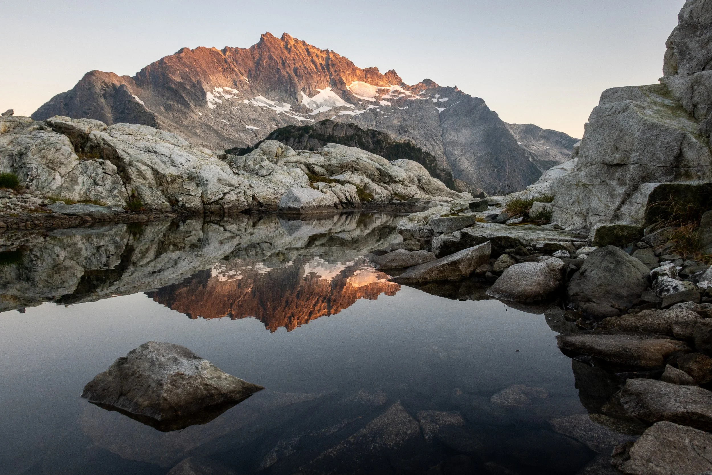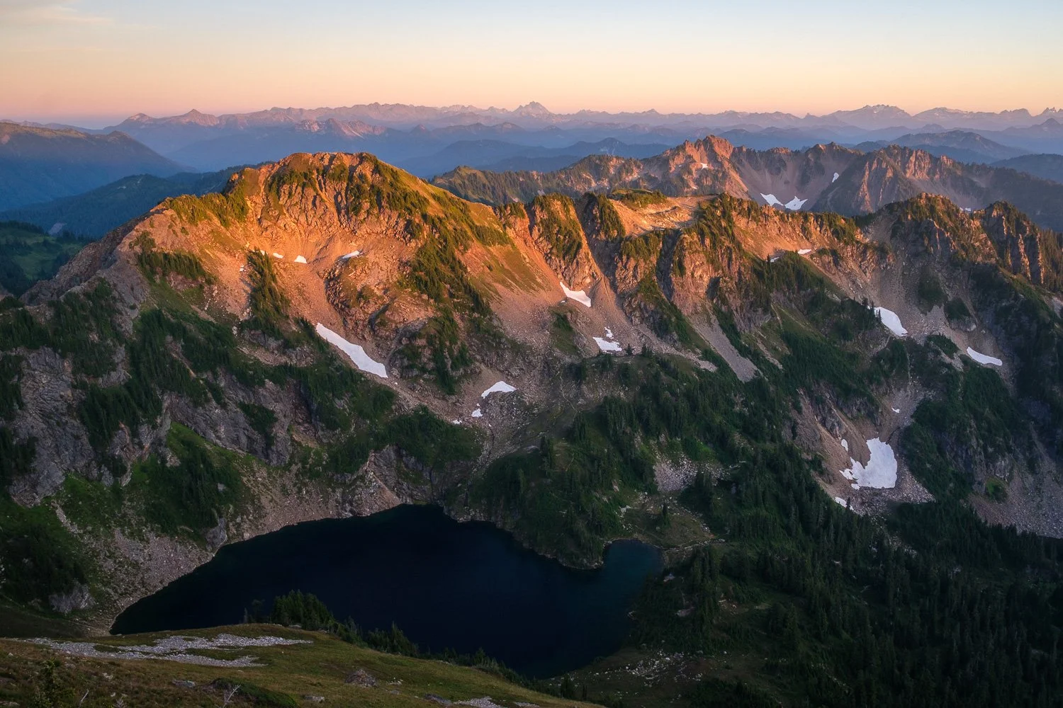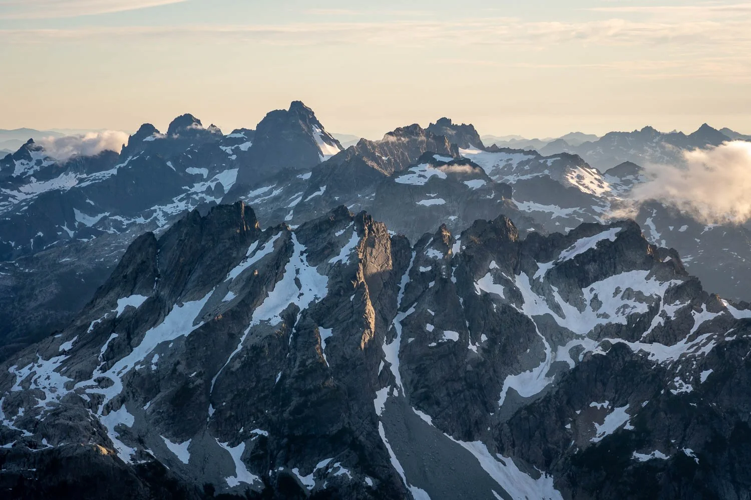 Beautiful morning light in the Enchantments, from high on Dragontail.