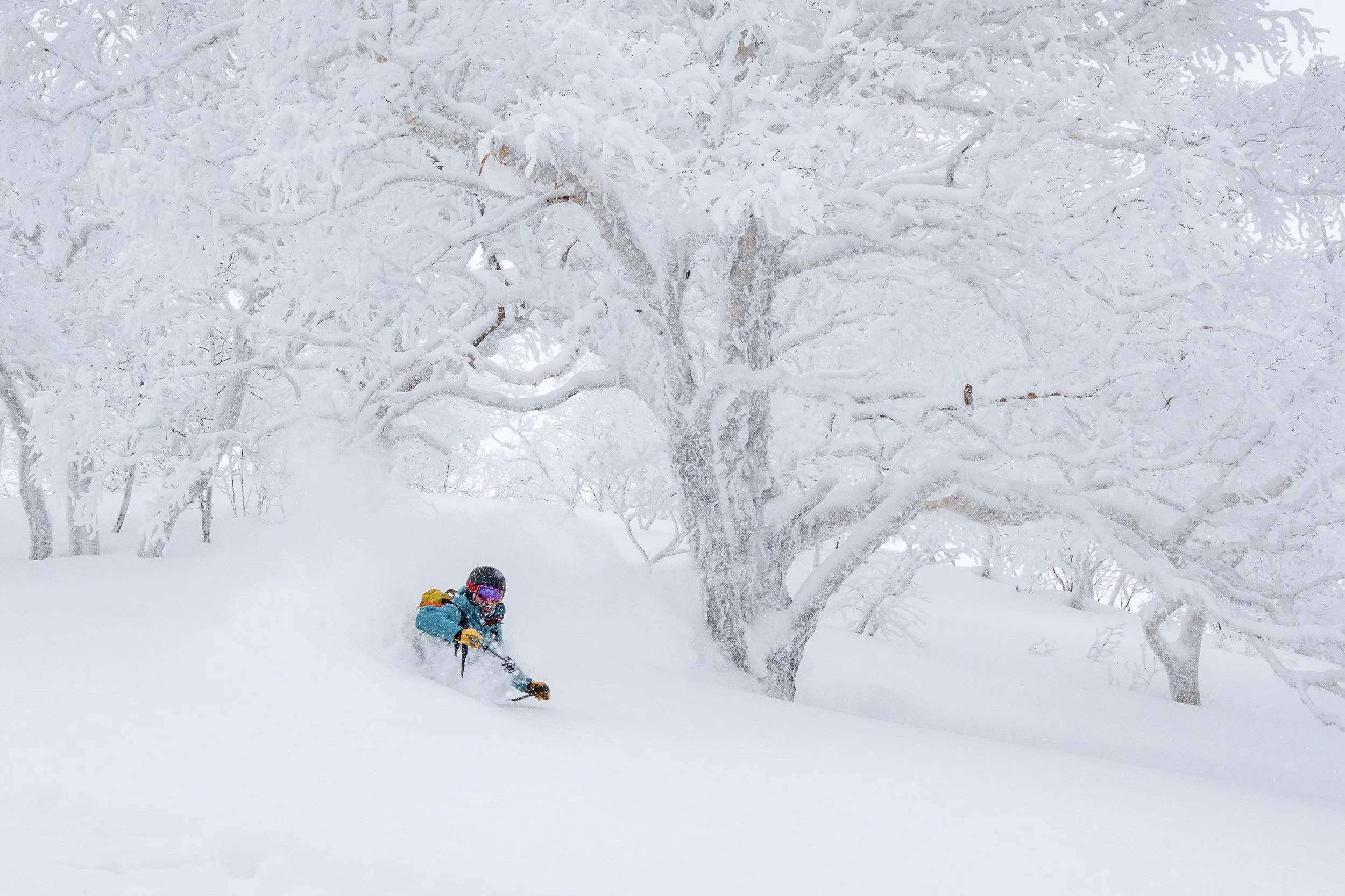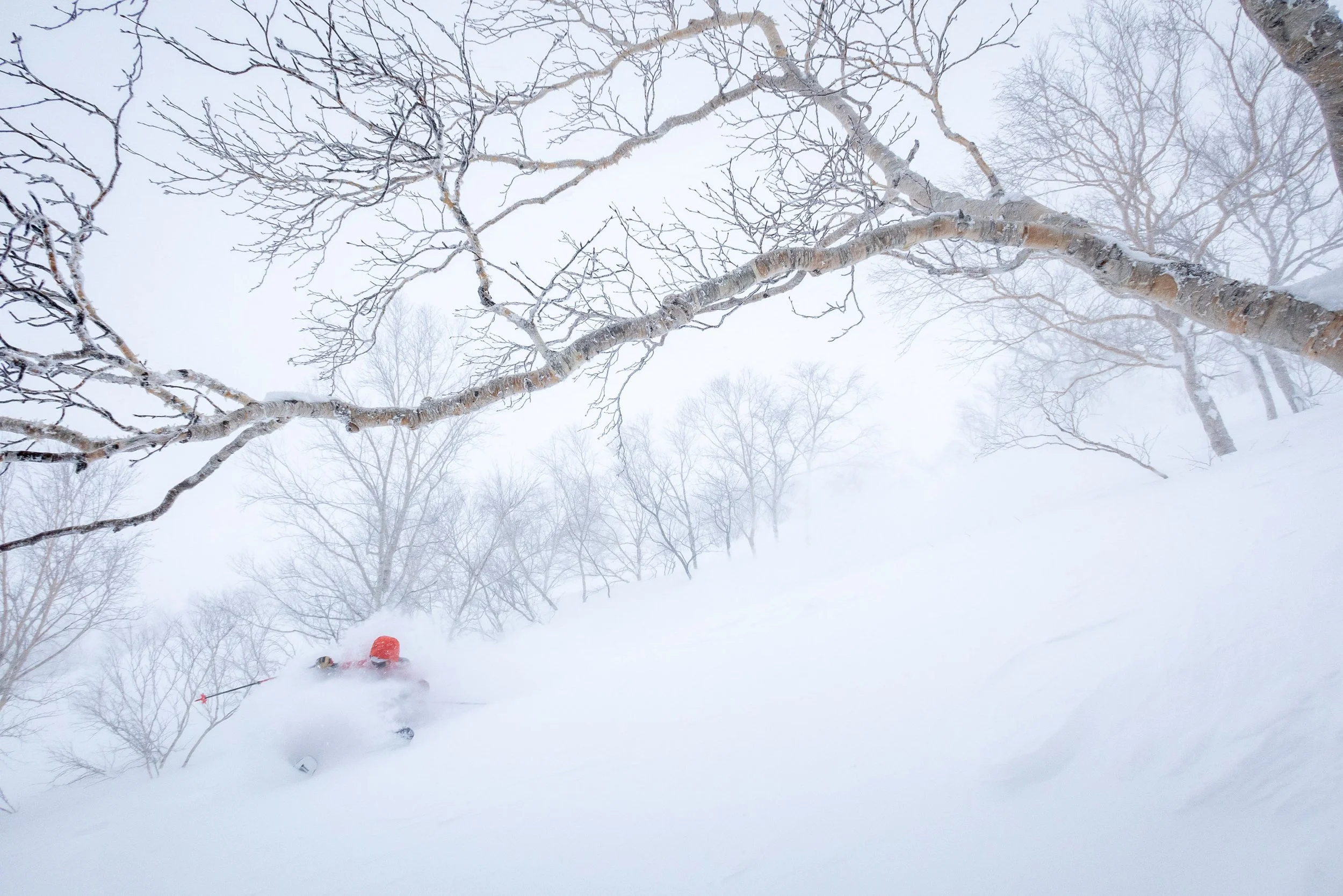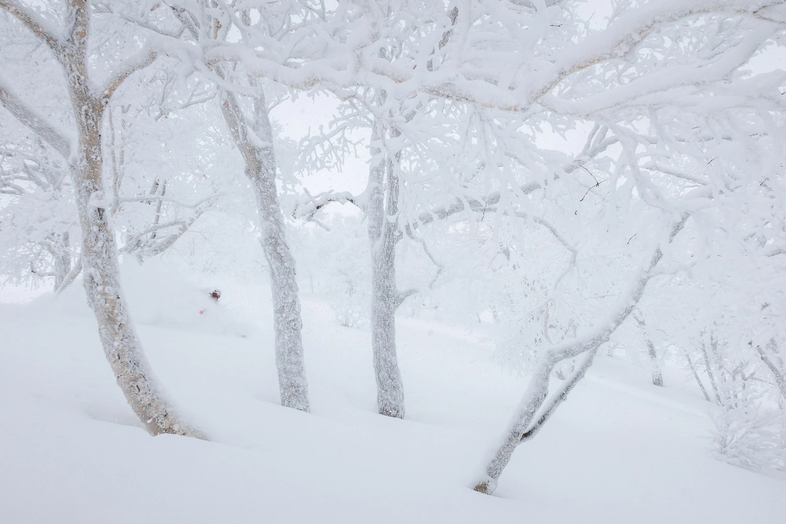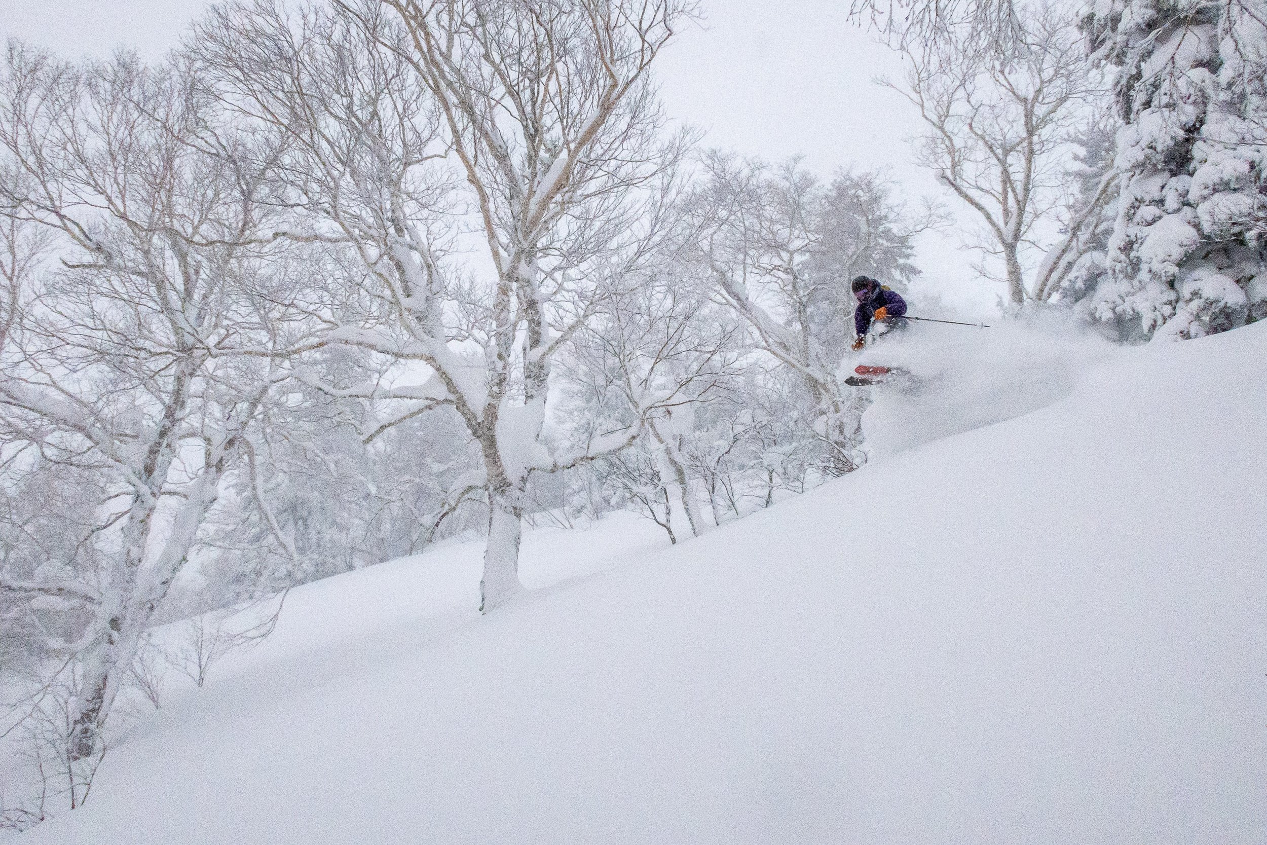 We took the Asahi-dake Ropeway up to treeline, and stepped out of the top terminal into an absolute ping pong ball whiteout. With the alpine out of the question, we skied down into the forest, through some magical trees that looked straight out of a fairy tale, and had a great day skiing blower powder on the one part of Asahi-dake that has some steeper terrain, which unfortunately meant it was fairly crowded. Nonetheless, we had a lot of fun getting in a bunch of short laps among the birches.