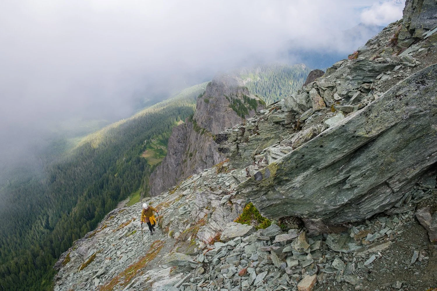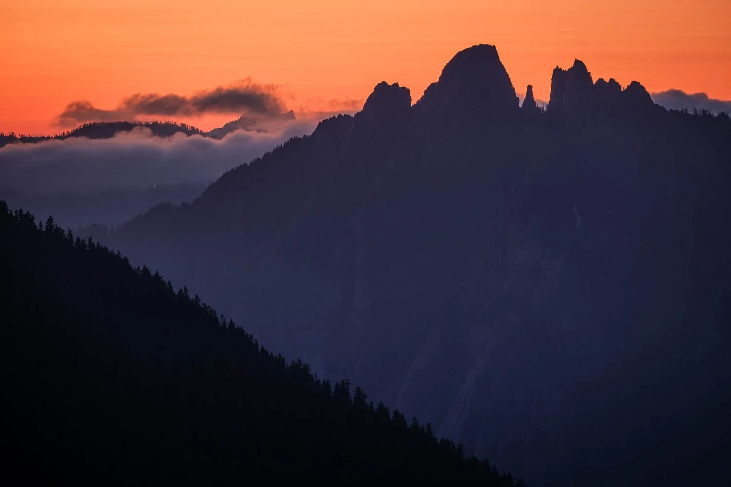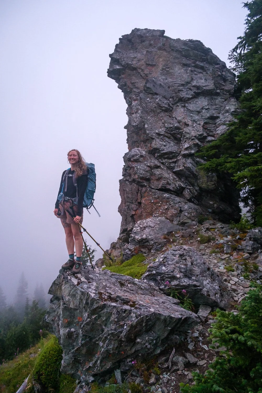 We set out from Seattle just past 5pm on Monday evening, cognizant of the earlier and earlier sunsets as we cruise towards autumn. After bumping our way up Forest Service Road 2435, we started hiking with just an hour of daylight left, and just a few hundred vertical feet of clearance between us and a thick cloud ceiling above us.