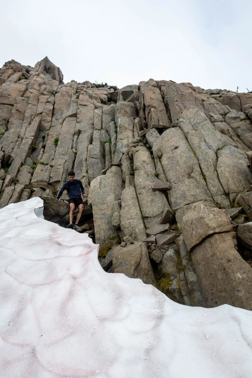 Matt doing some classic moat-groveling on the Wonderland Trail (still snowcovered!) just below Panhandle Gap.