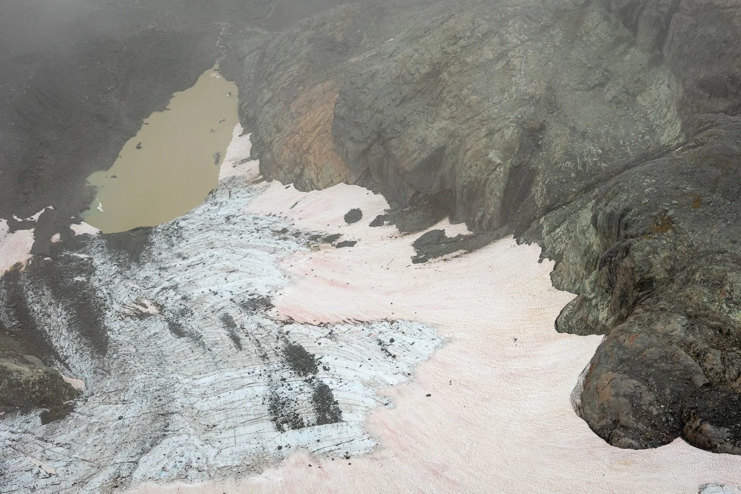 The Sarvant Glacier in the fog below Banshee Peak, looking like it’s only got a few years left :(