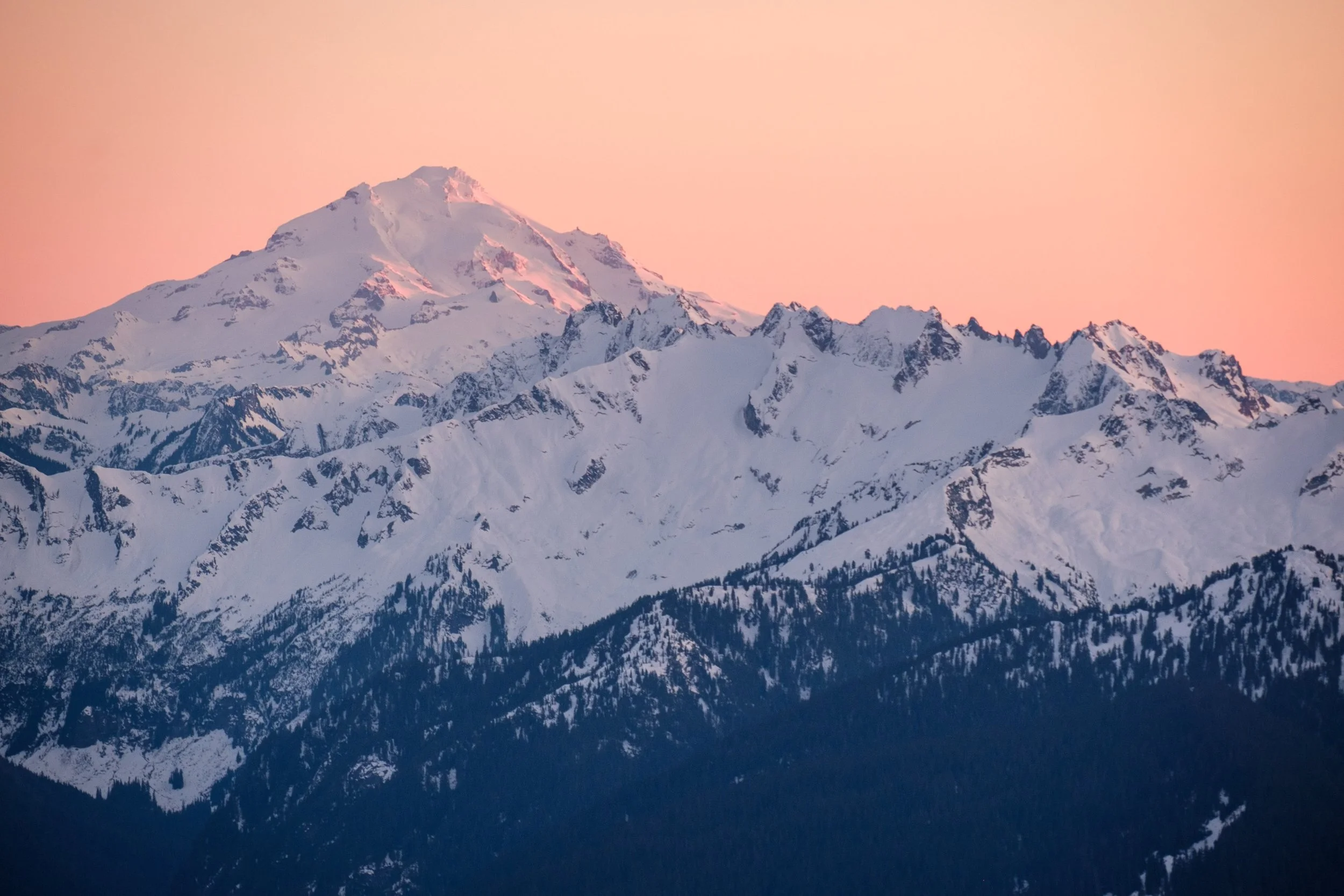 Sloan Peak silhouetted against a glowing skyline during a sunset that seemed to last forever.