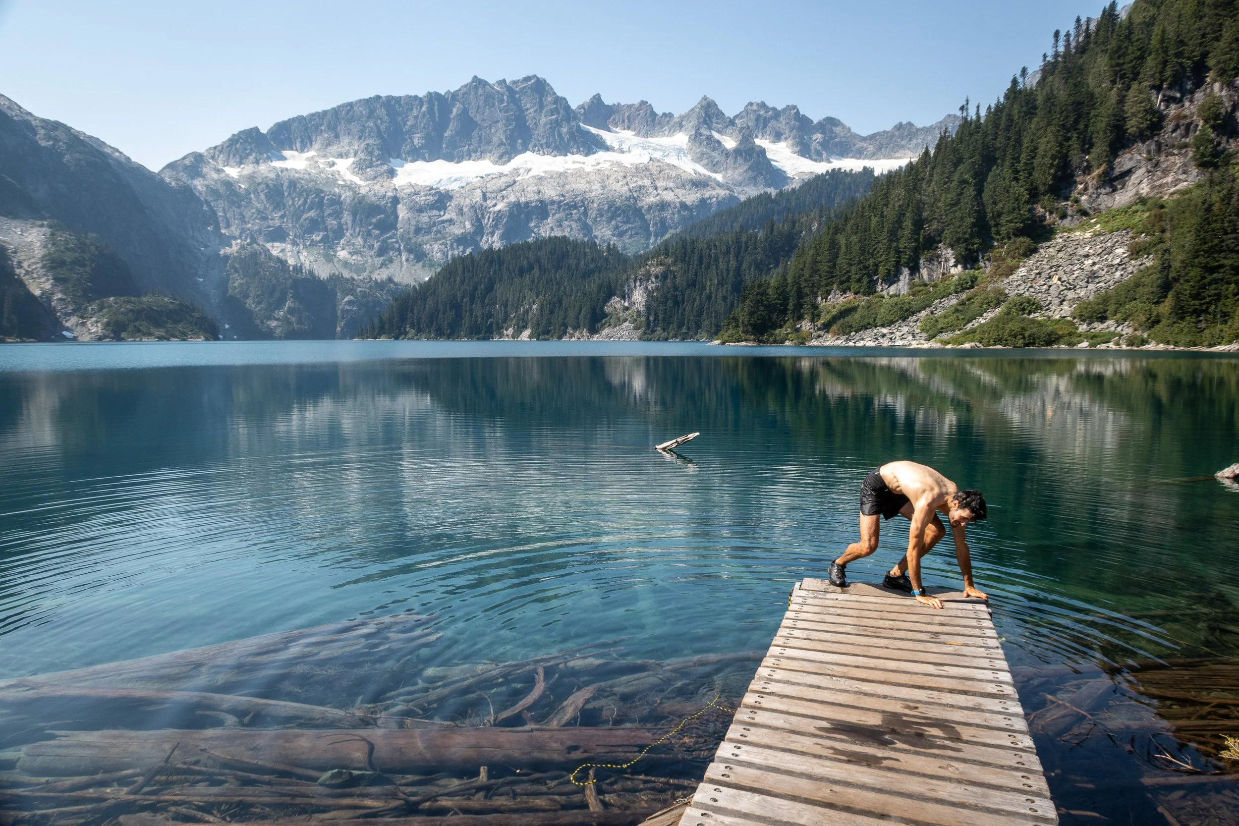 Marco taking a cheeky dip to cool off before heading up Johnson.