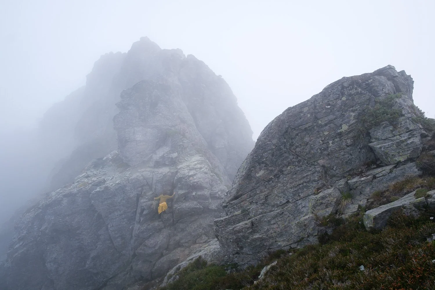The meadows in the mist were gorgeous (in a moody sort of way), and the off trail travel was easy, but unfortunately, as we neared the summit of Banshee Peak, my knee started hurting again - quite frustrating after a good number of more difficult trips over rougher terrain without incident. We reached the summit of Banshee Peak, still totally socked in, but I decided to bail on the Cowlitz Chimneys to minimize the amount of off trail travel. The silver lining is that when I eventually do go back for it, hopefully I’ll be able to actually see something!