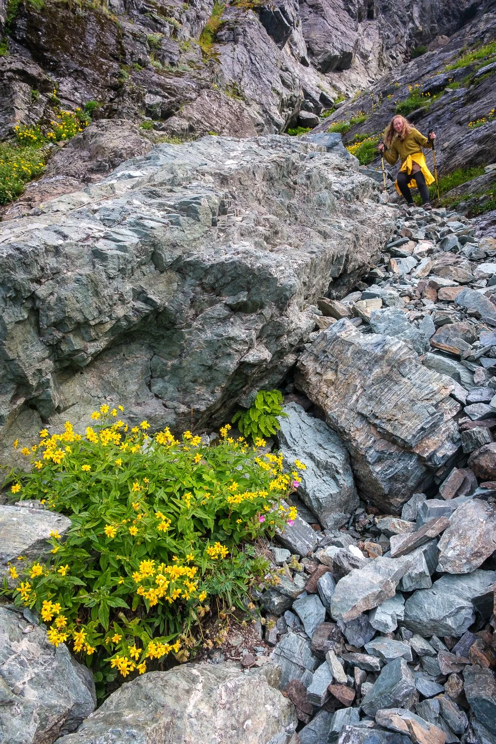 We returned to camp to pack up and make our way out. The traverse past Red Mountain to Fourth of July Pass and Ruby looked straightforward and tempting, but I had promised Alex I wouldn’t let him miss his flight home. I’ll have to come back!