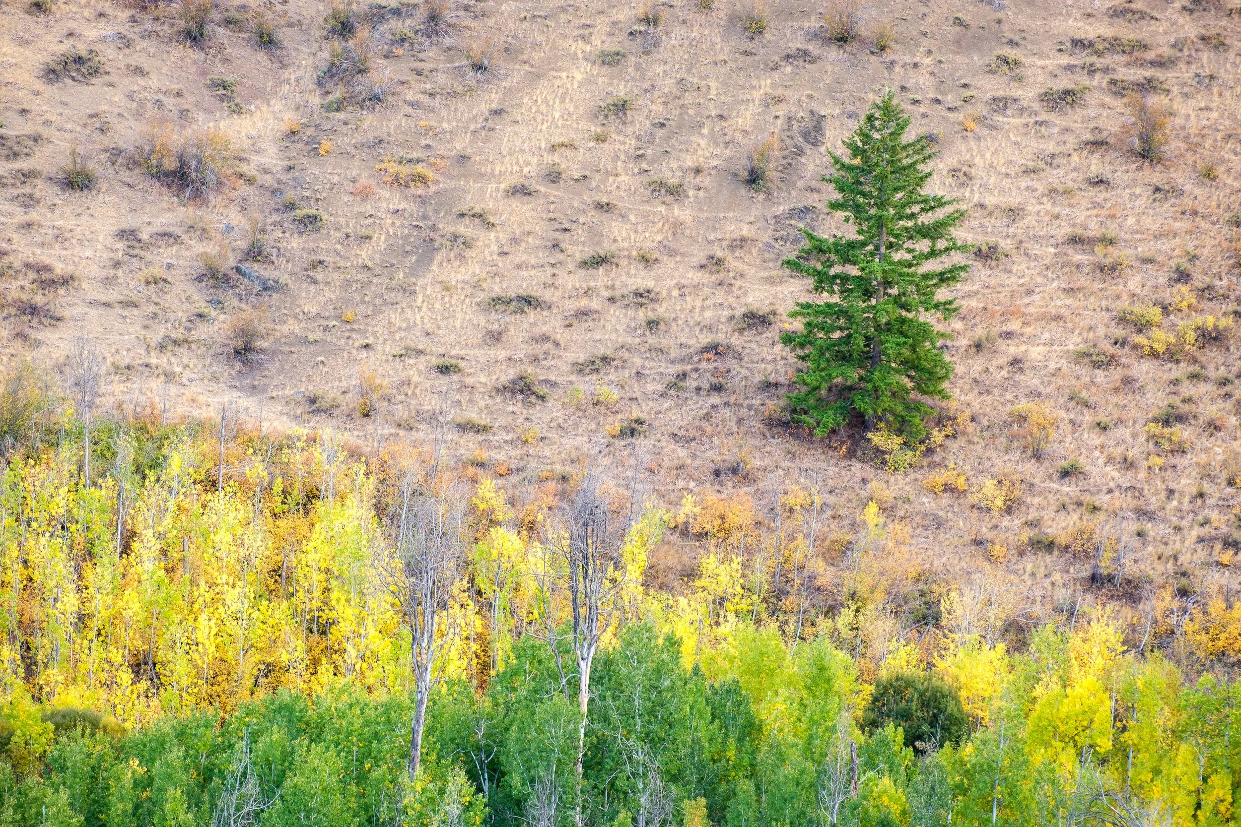 Becca riding above a copse of Aspens