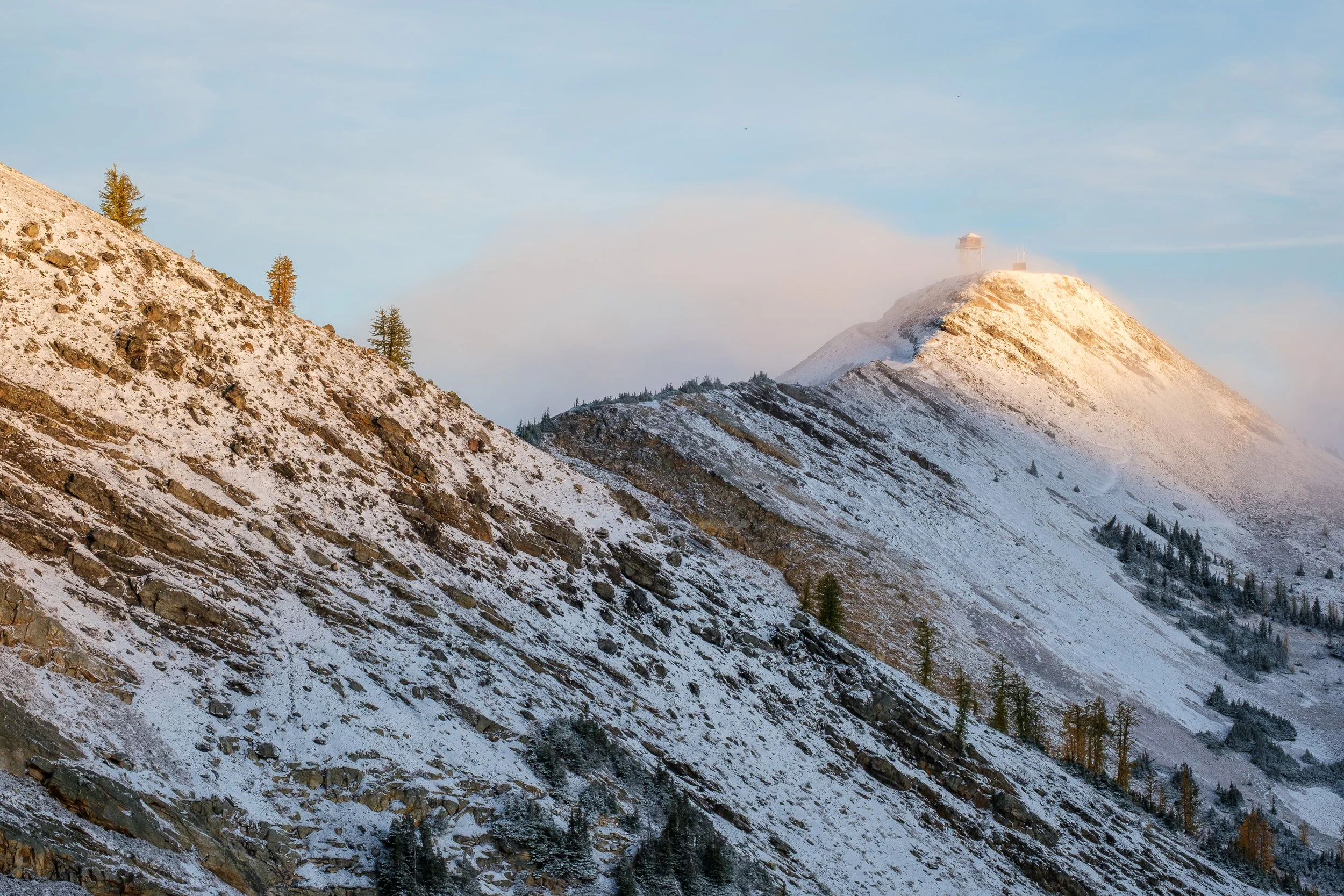 Morning light on Silver Star Mountain, with larches in the foreground