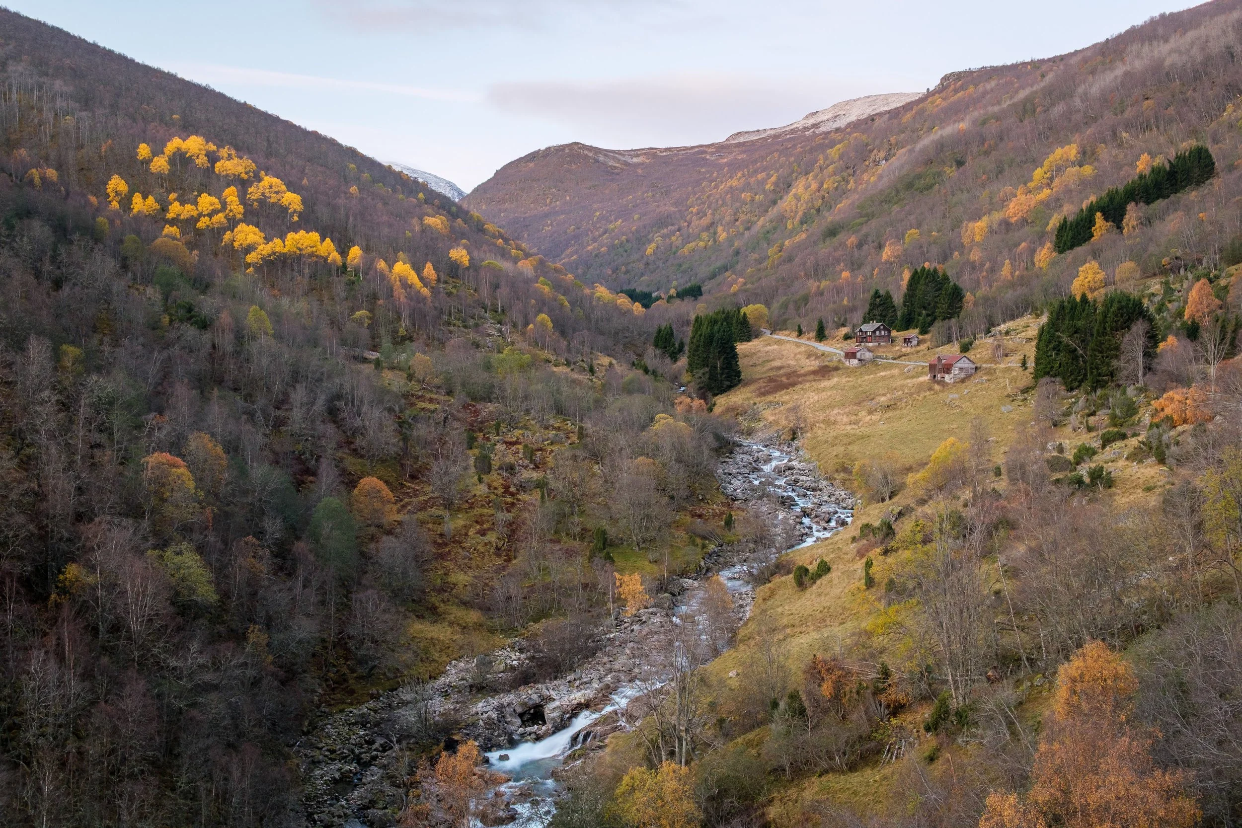 Dawn along the Erdalselvi Valley, which carries the old Bergen-Oslo Highway that has since been replaced by the Laerdal Tunnel, the longest road tunnel in the world.