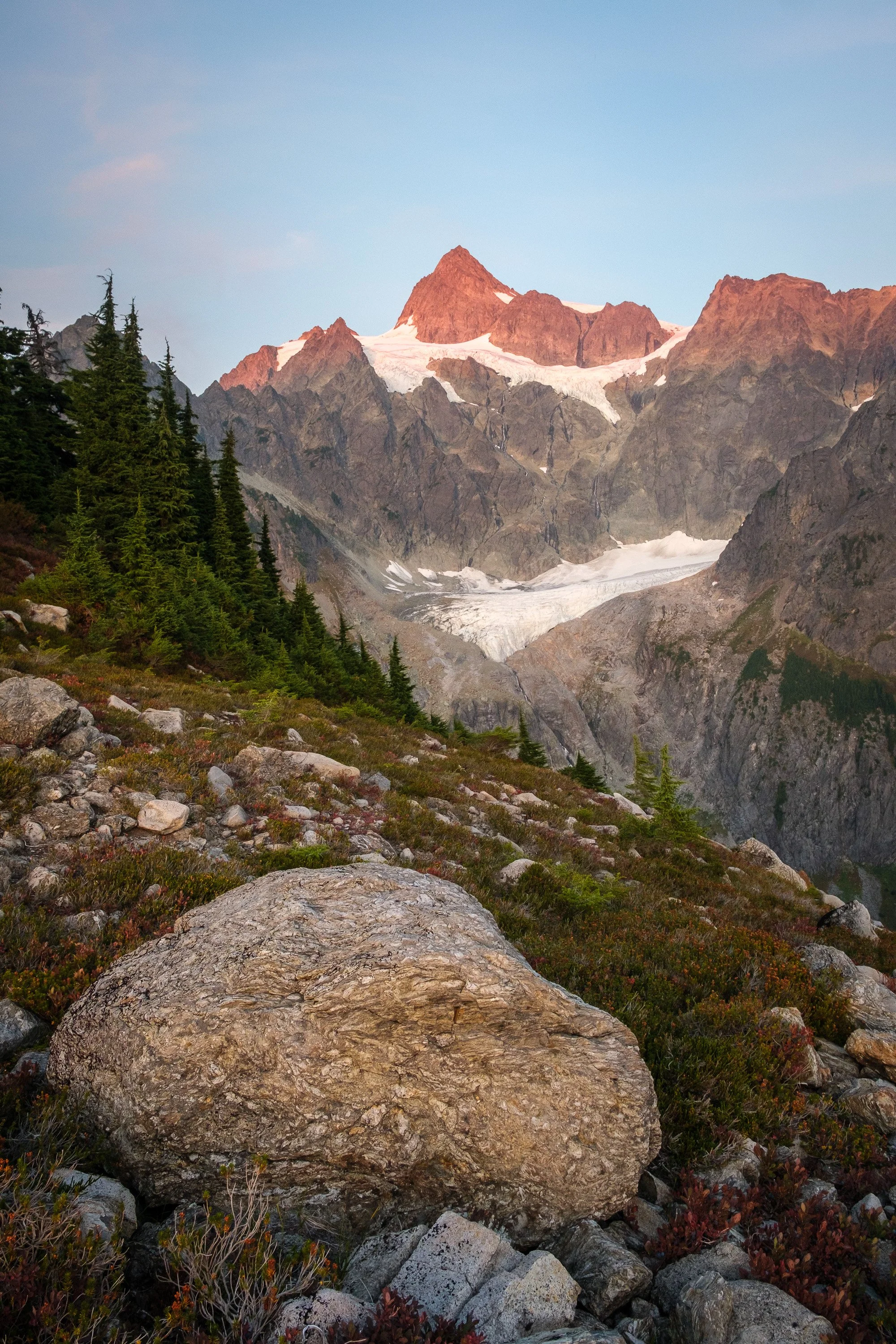 Two weeks ago, I snuck out for a quick overnight on Mount Ann, a beautiful summit right between Mount Shuksan and Mount Baker, making for amazing views in both directions. I’ve been up Mount Ann a few times in the winter, but never before in the summer, so I was excited to get out and see some fall foliage.