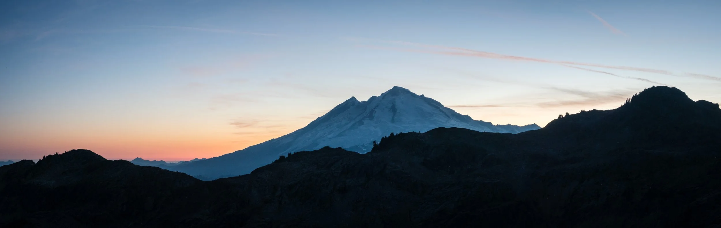 Mount Baker at dusk. Mount Ann’s summit is to the right.