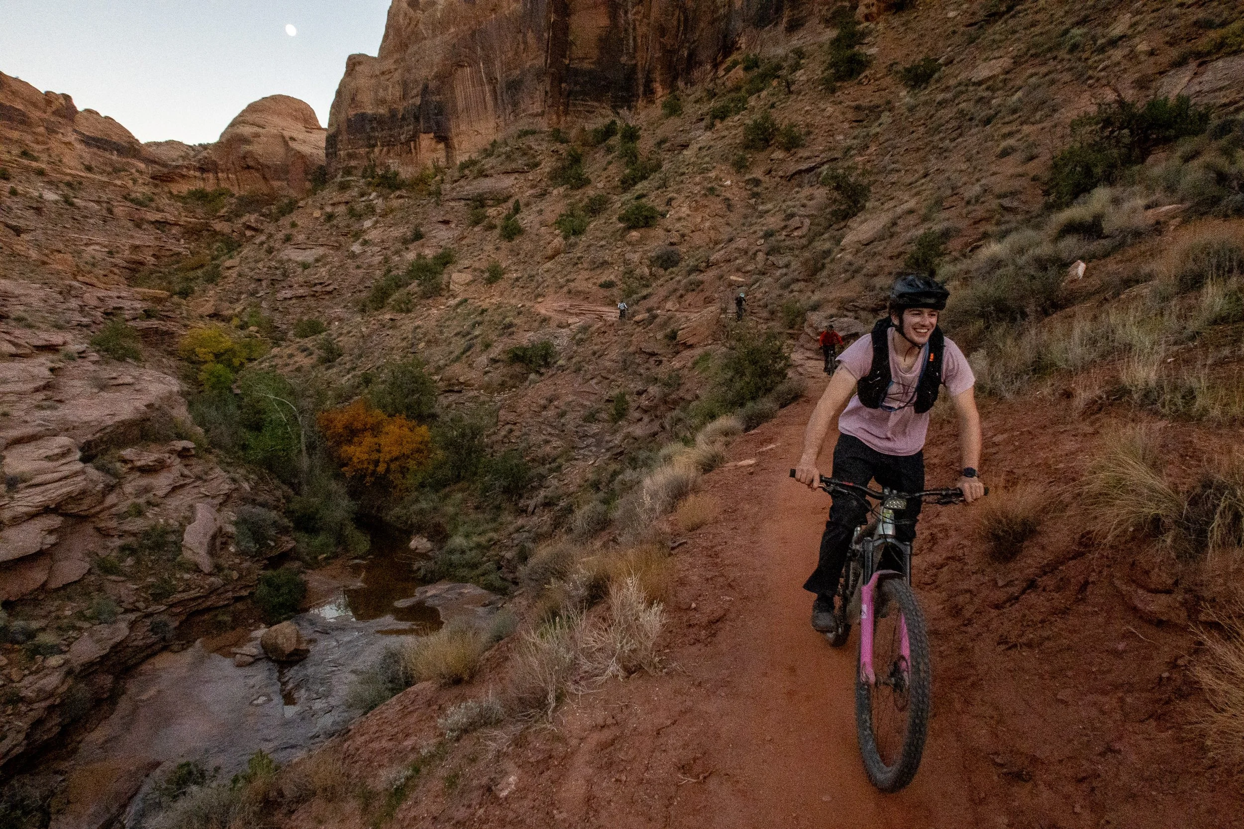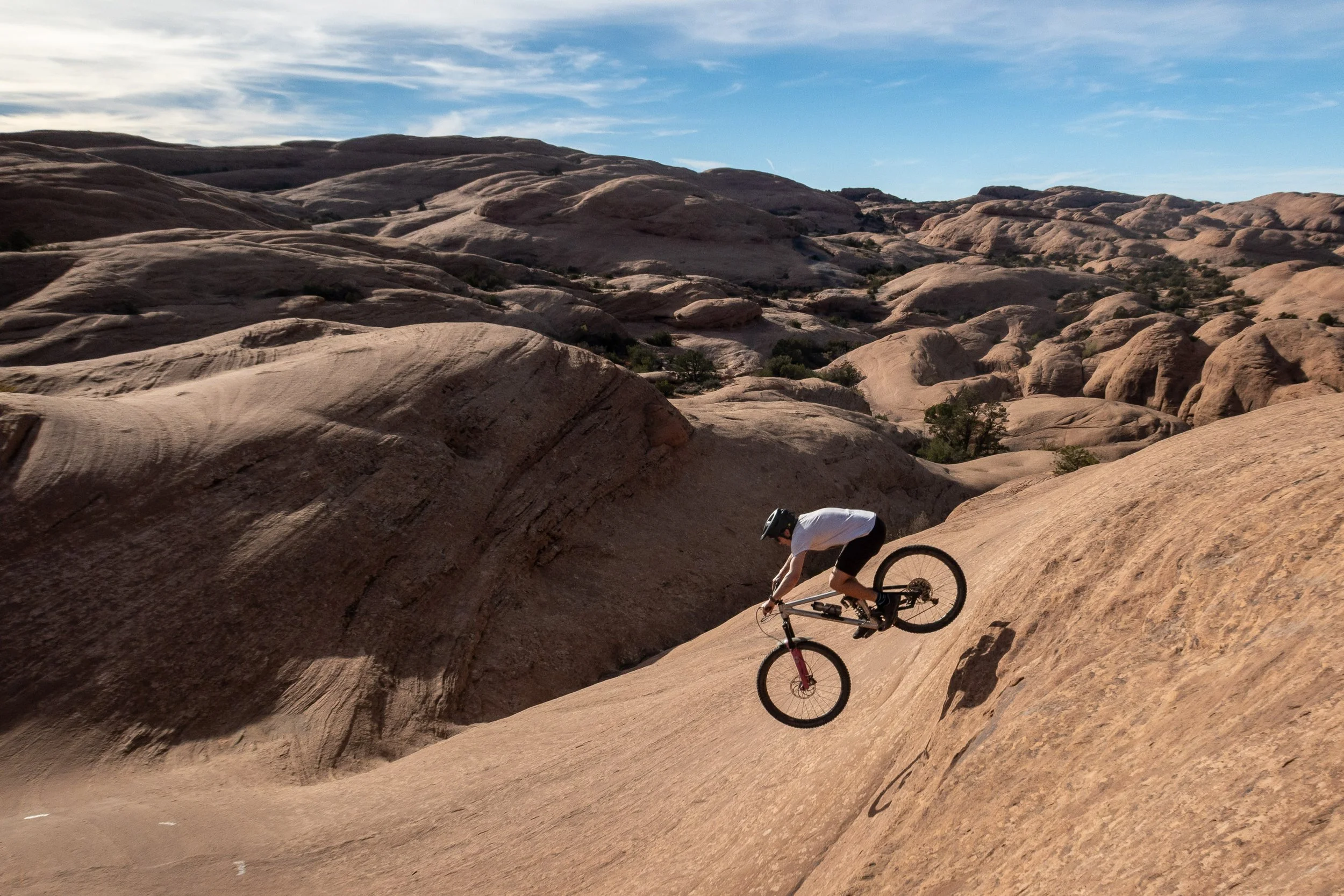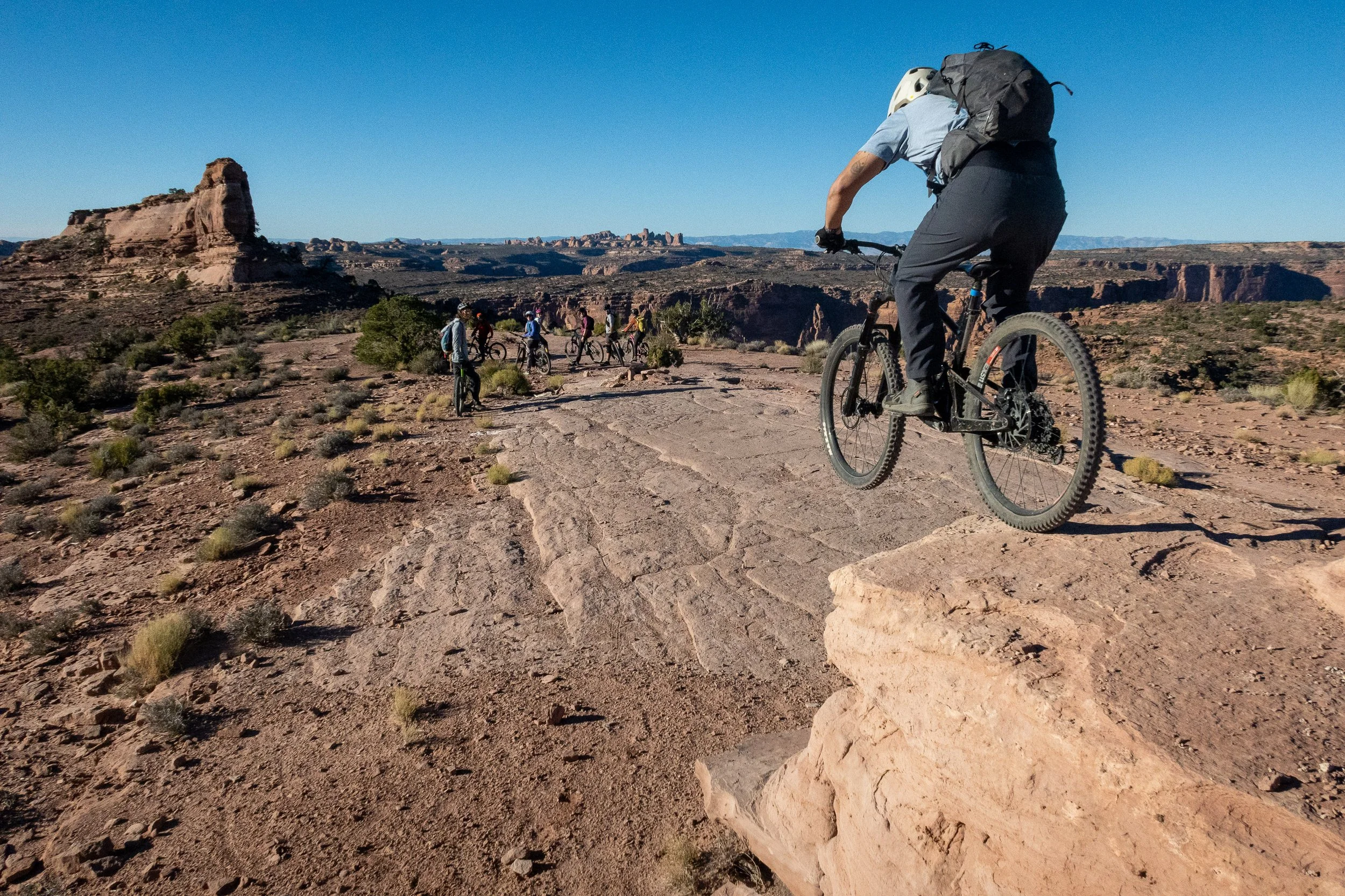 We started off riding the Slickrock Trail, a rolling, cross-country style trail that is one of the oldest mountain bike trails in the area and a true classic. With some short but punchy climbs, it offered a great intro to riding on slickrock (very different from the loam of the PNW!) and fun opportunities to explore.