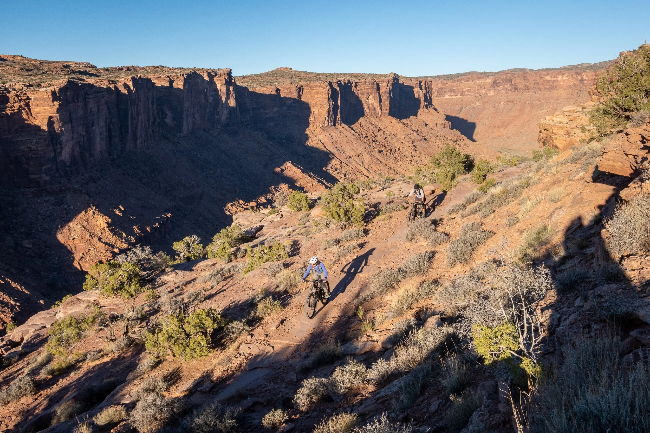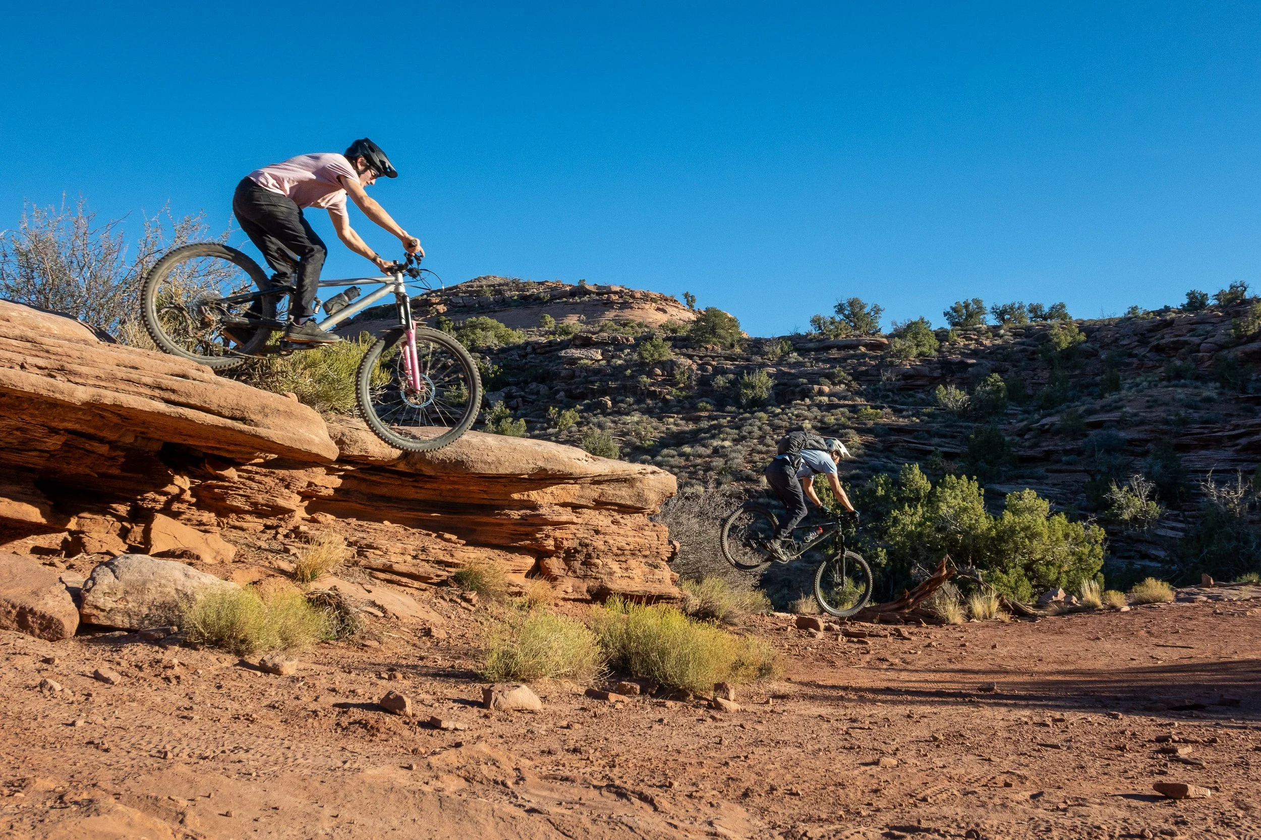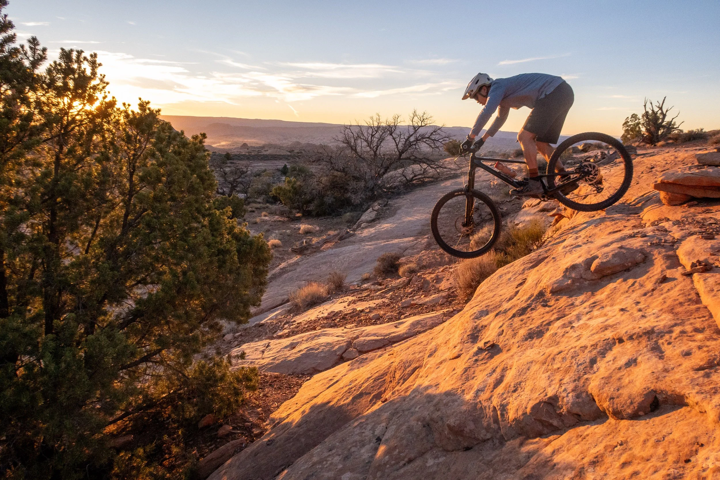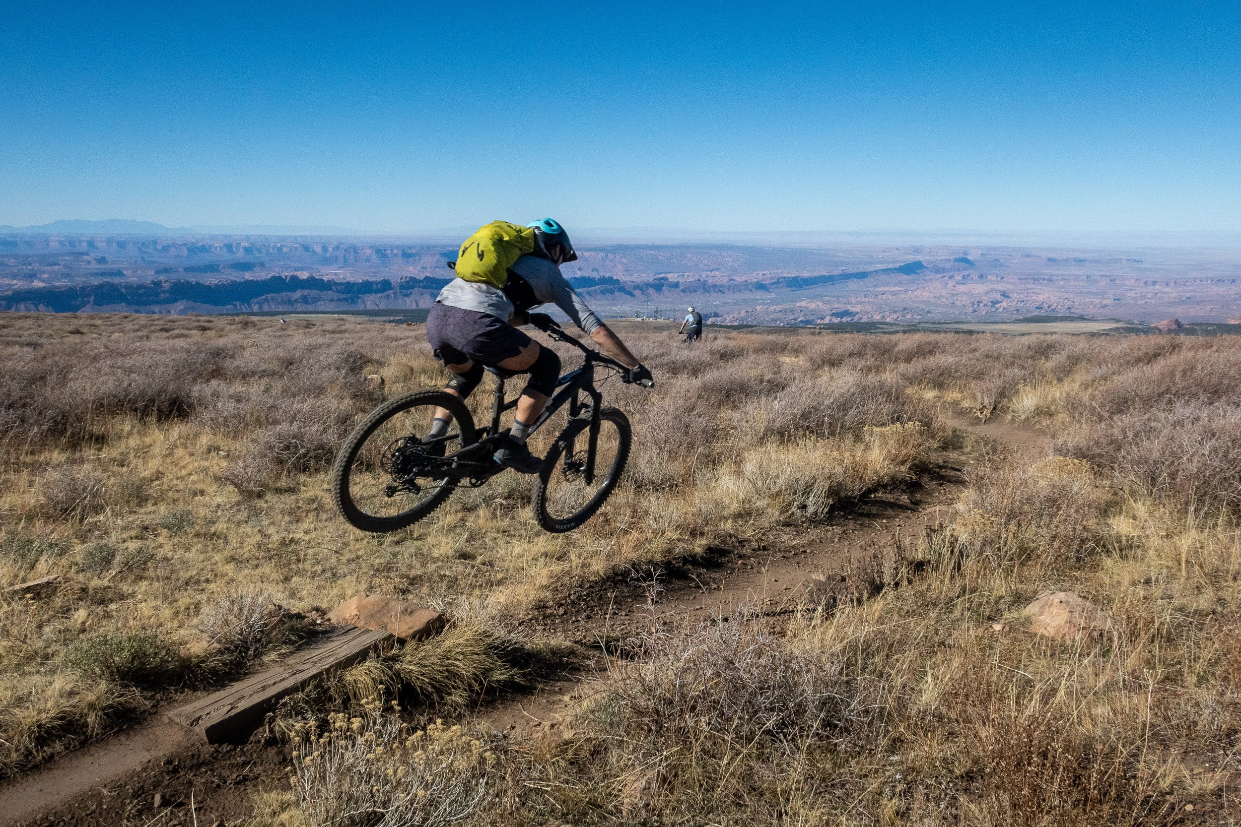 Louis dominating a drop on the doubletrack portion of the Porcupine Rim trail