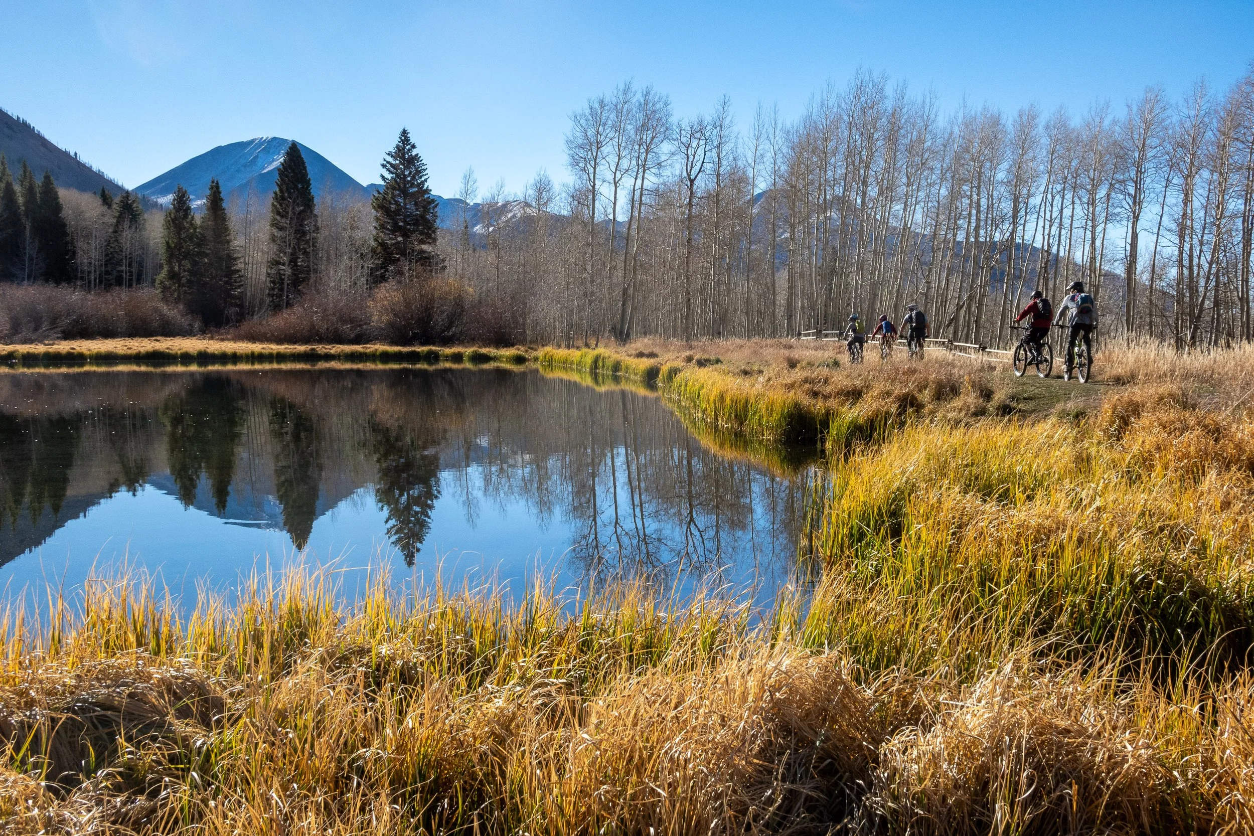 Pedaling past Warner Lake in the La Sals, through gorgeous aspen forest