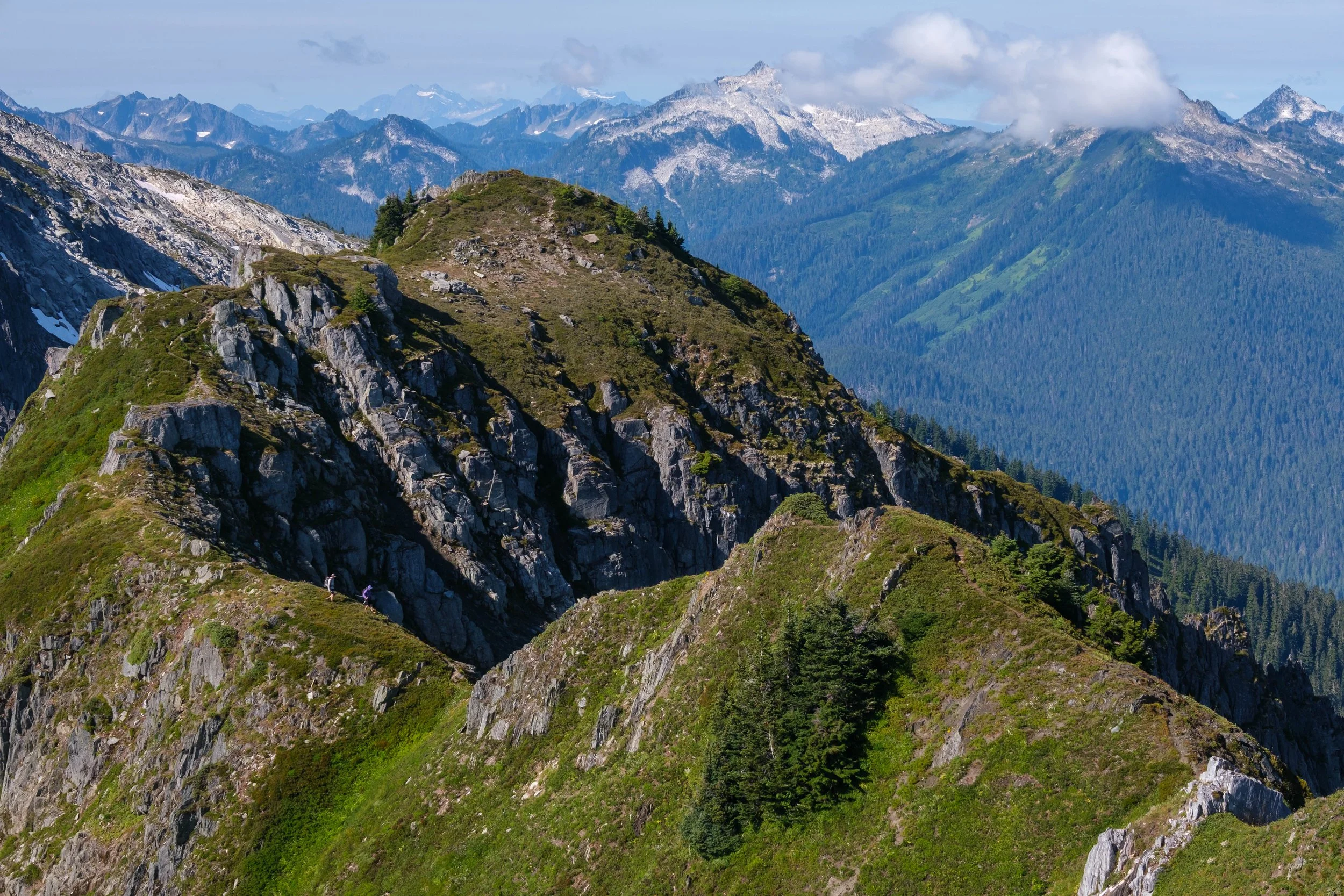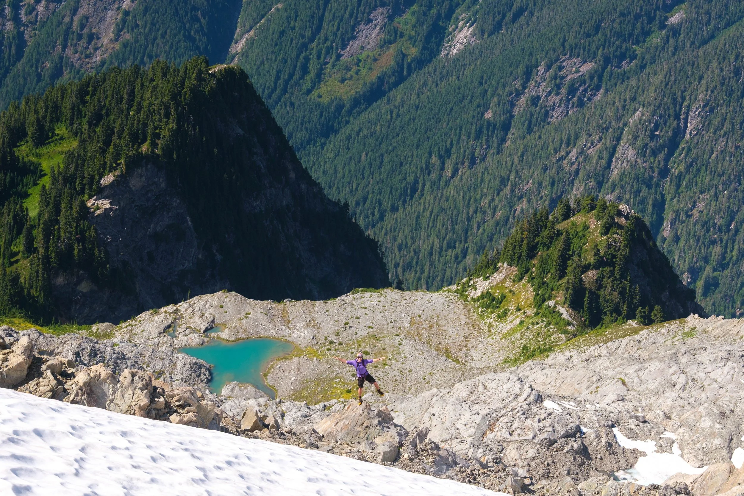 The Three Dicks are an engorged hunk of rock on the high ridge between two more well known mountains. To the northwest is Eldorado Peak, a classic NCNP mountaineering objective, while to the southwest of The Three Dicks sits Hidden Lake Peaks, which, while lower in elevation than The Three Dicks, has a Instagram horde-summoning fire lookout and an easy trail. The Three Dicks, on the other hand, seems to see only a handful of ascents a year, and has relatively little information available about it online. Nonetheless, I had wanted to climb it for years, and I thought that it was a truly delightful climb that ought to be a classic: short approach, beautiful ridge walking, a tasteful amount of off trail travel, and a clean, easy, and incredible exposed scramble to reach the summit. A taste of the full North Cascades experience, no suffering required.