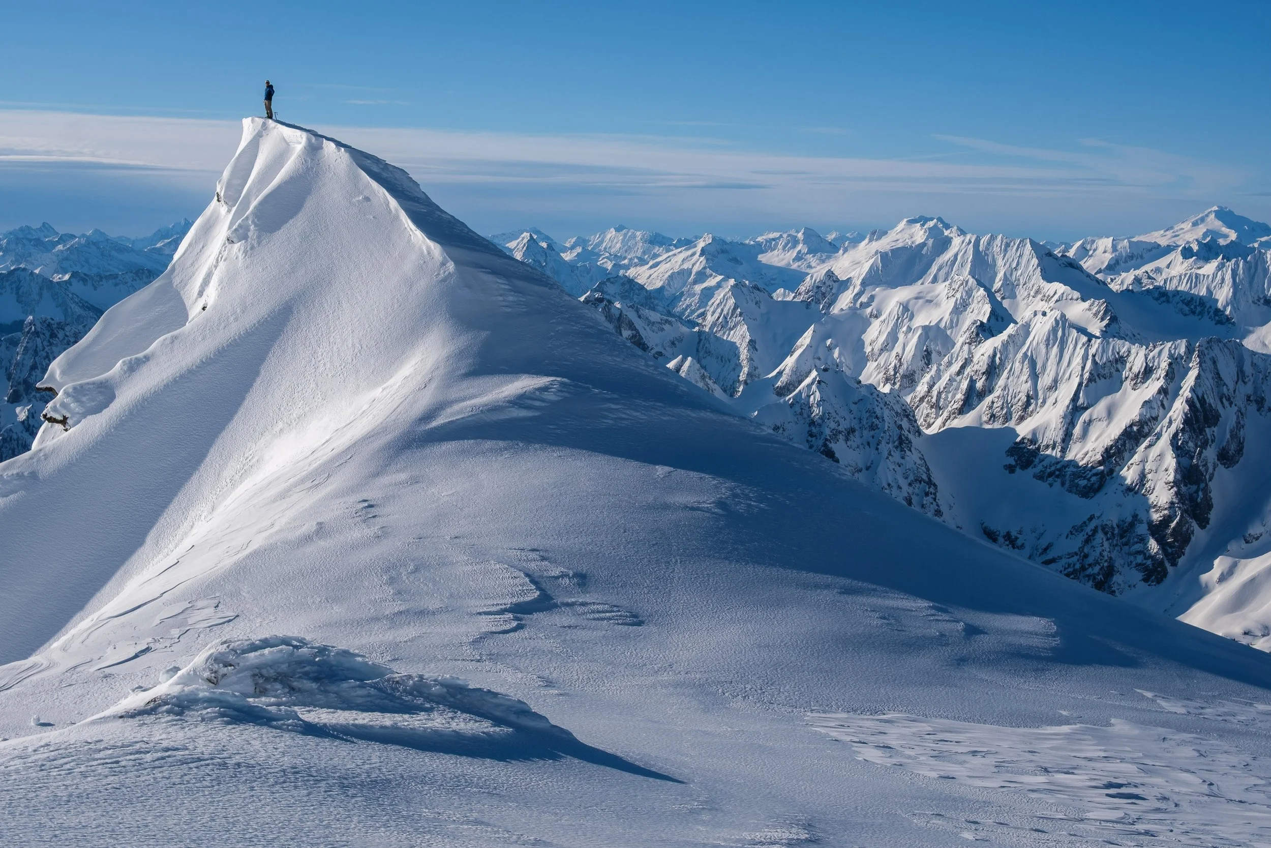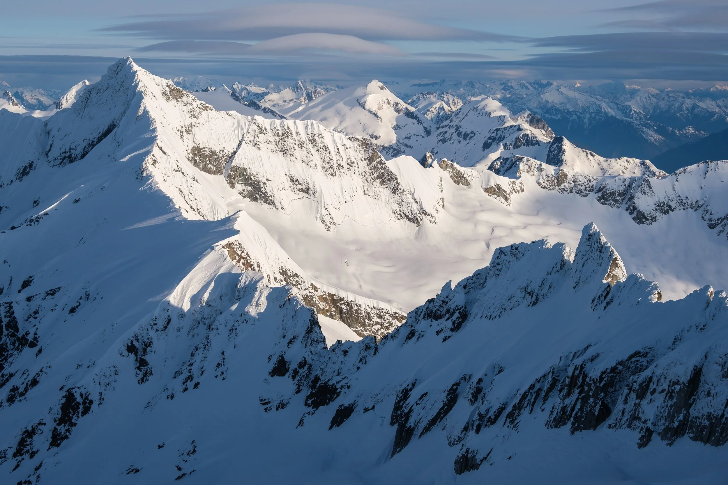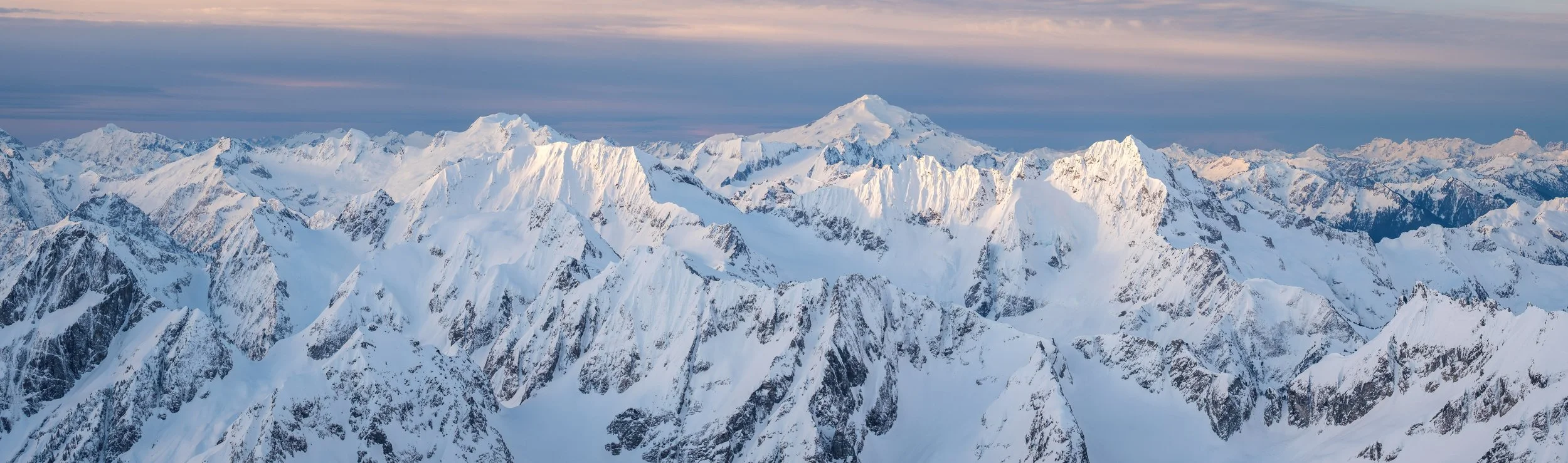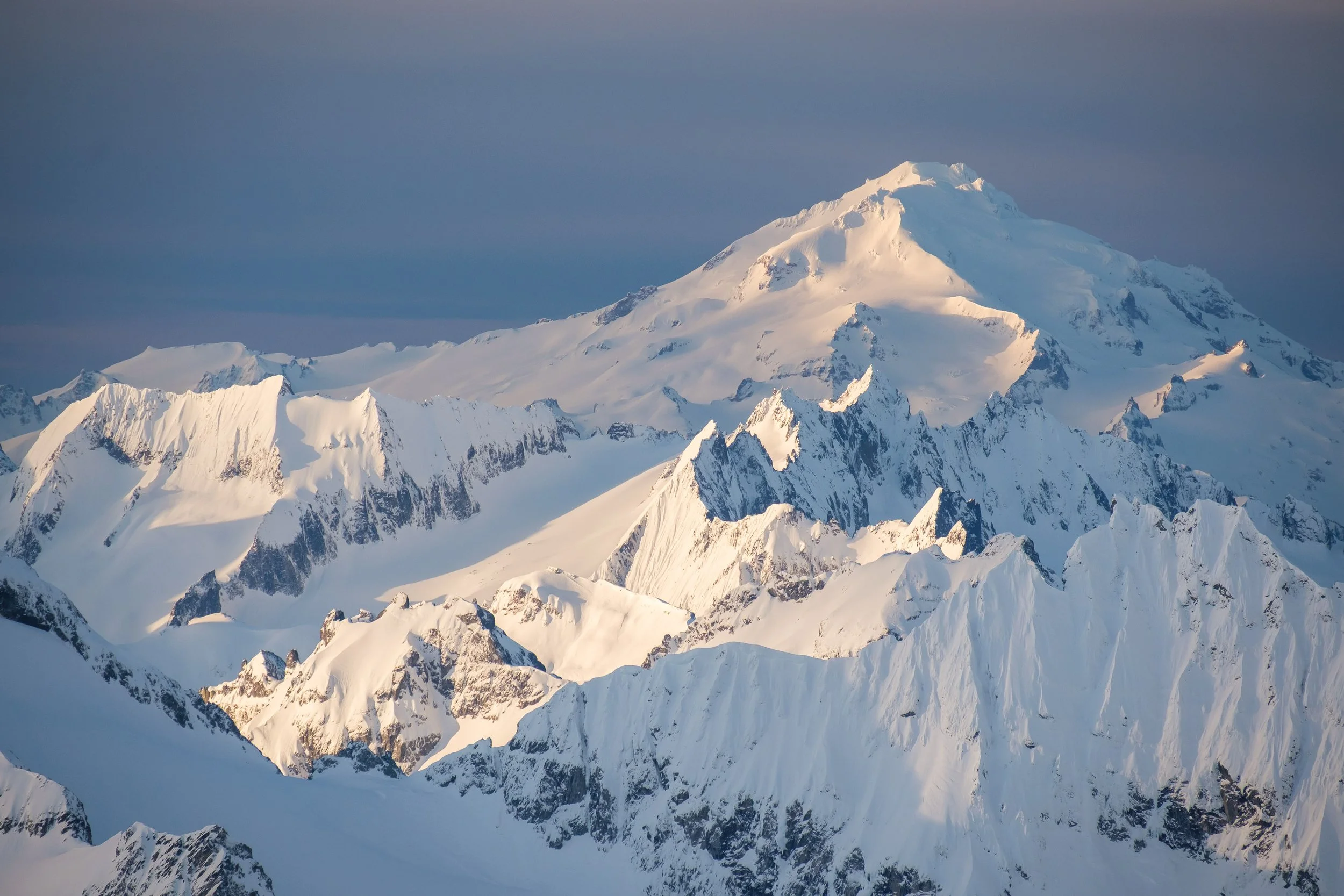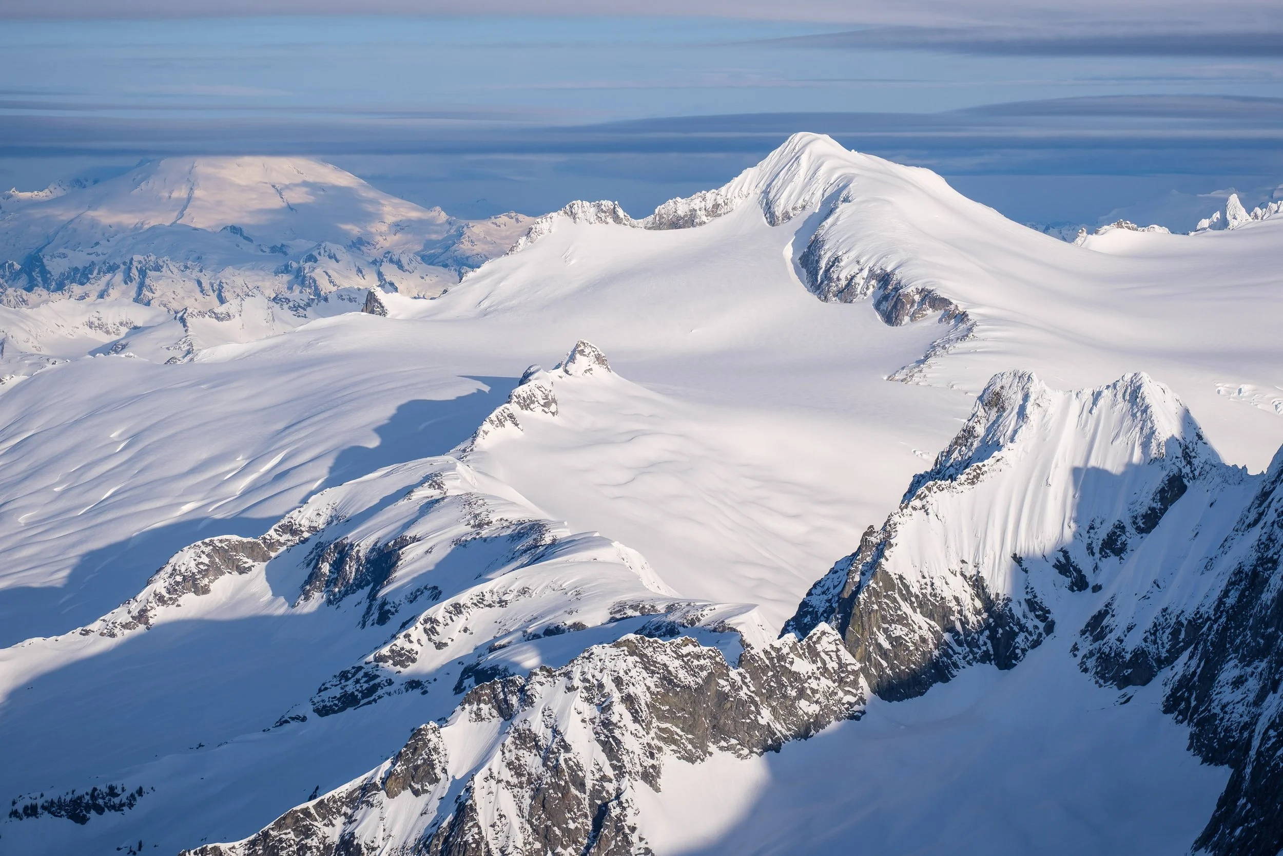 Baker, with its summit in the clouds, Eldorado, and Torment at lower right.